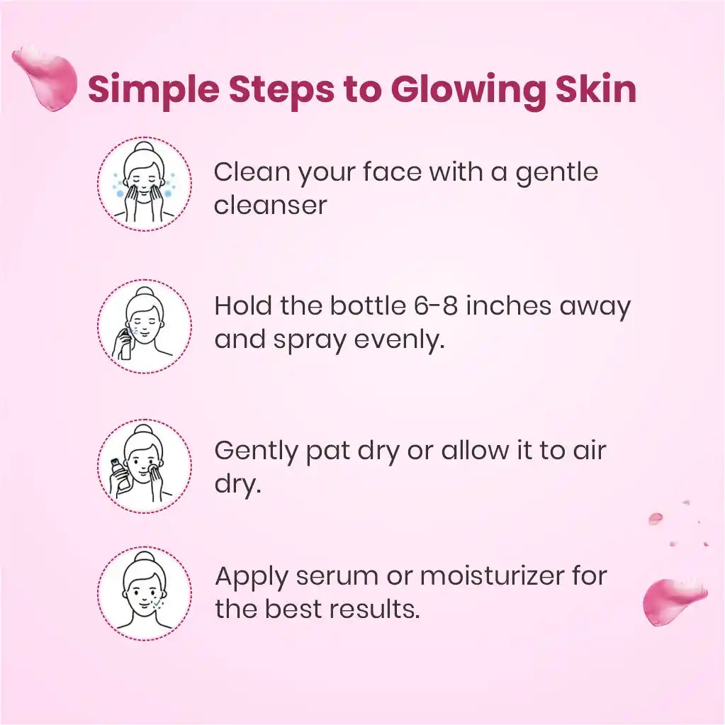 Rose Water is a natural, soothing toner known for its hydrating and calming properties. It helps balance skin’s pH, reduces redness, and refreshes the complexion. Ideal for all skin types, it can be used to gently cleanse, tighten pores, and prepare the skin for moisturizers or serums. Its delicate floral essence also provides a subtle, refreshing aroma, enhancing your skincare routine with a touch of natural wellness.